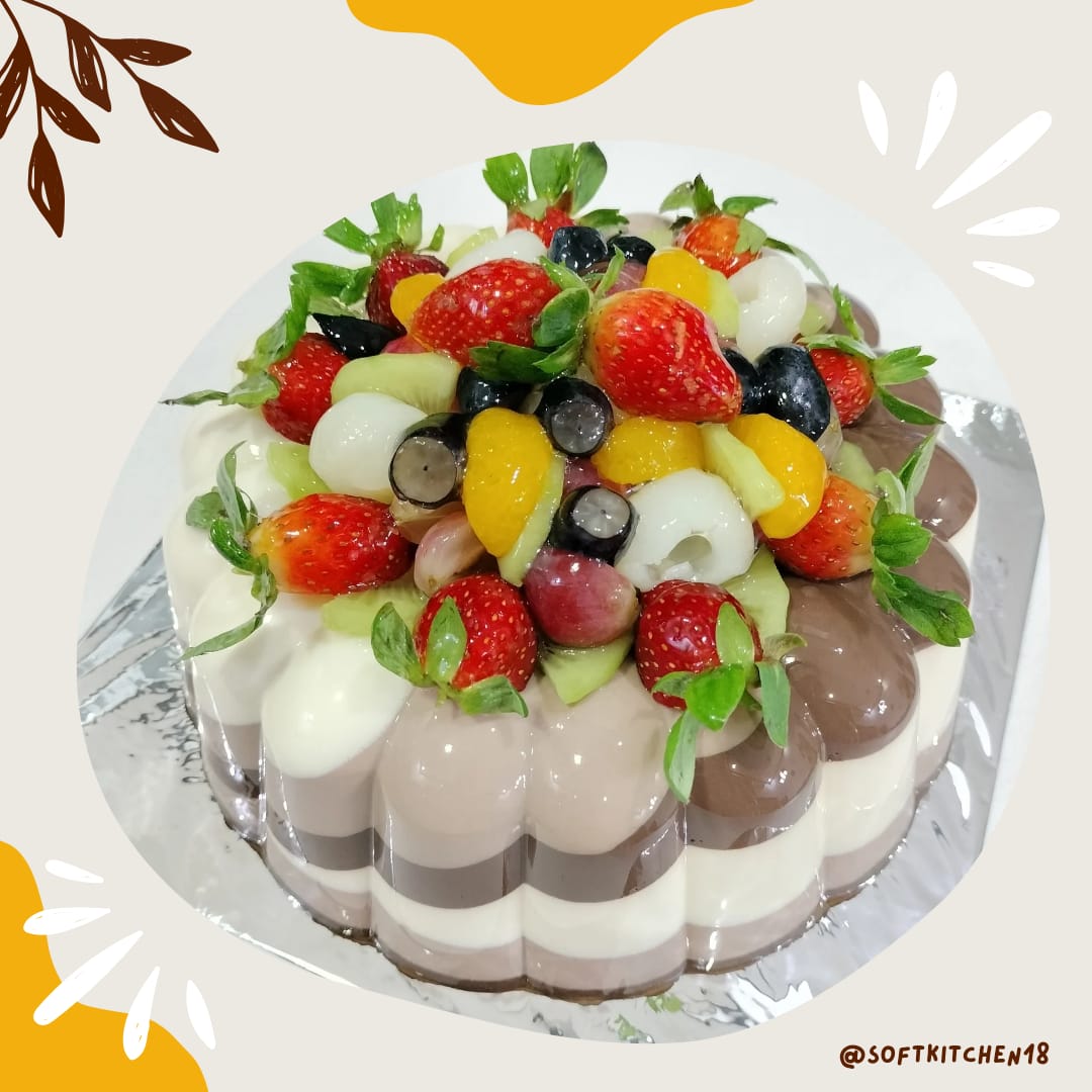 3 layered pudding inlcude vanila, milk and chocolate pudding printed diagonally.